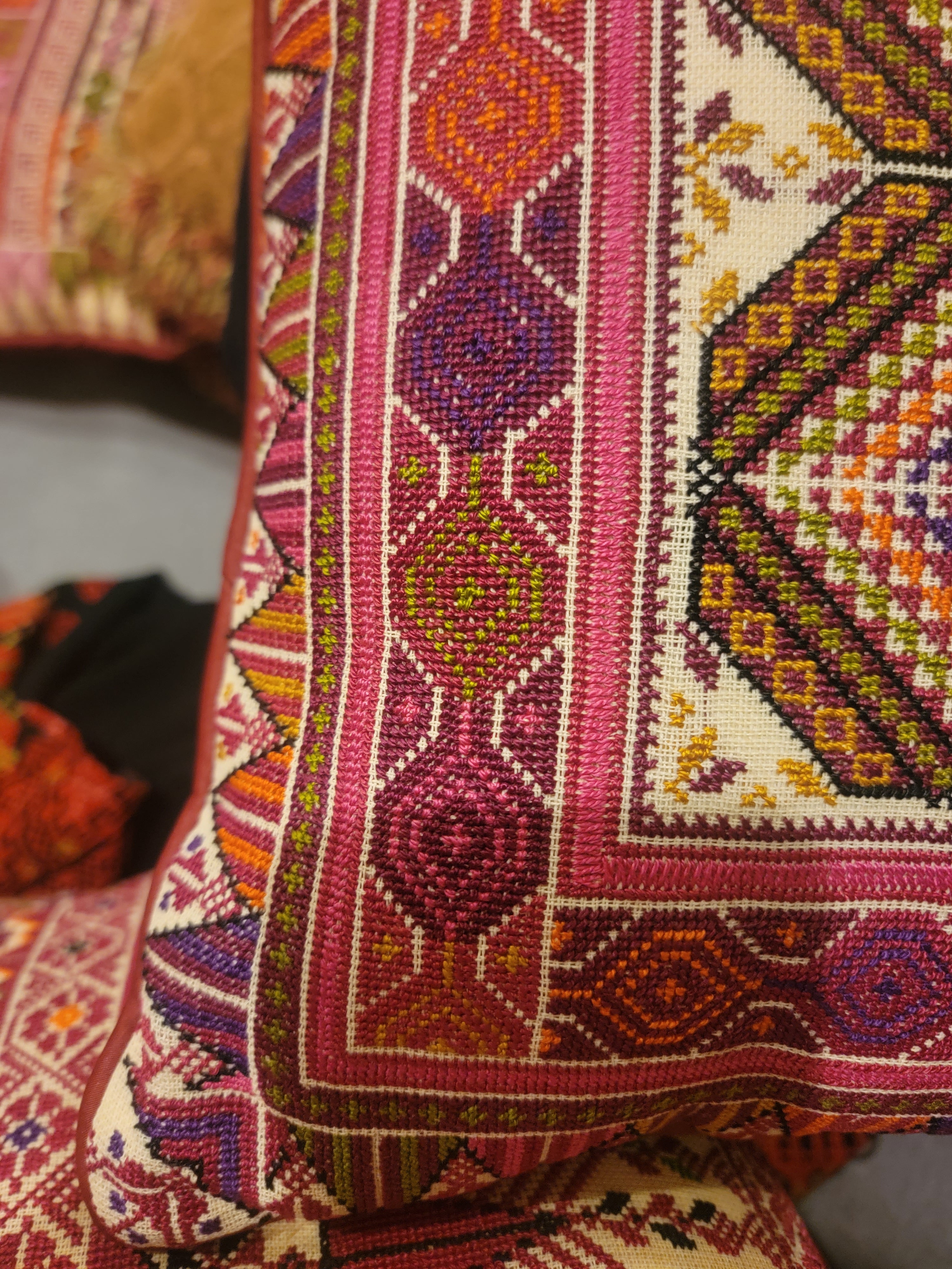 Tatreez refers to traditional Palestinian embroidery, a craft that has been passed down through generations in Palestinian culture. It involves the art of stitching intricate and colorful patterns onto fabric, often using cross-stitch techniques. Tatreez is a significant cultural and artistic expression, with each pattern and design carrying historical, social, and regional meanings.
